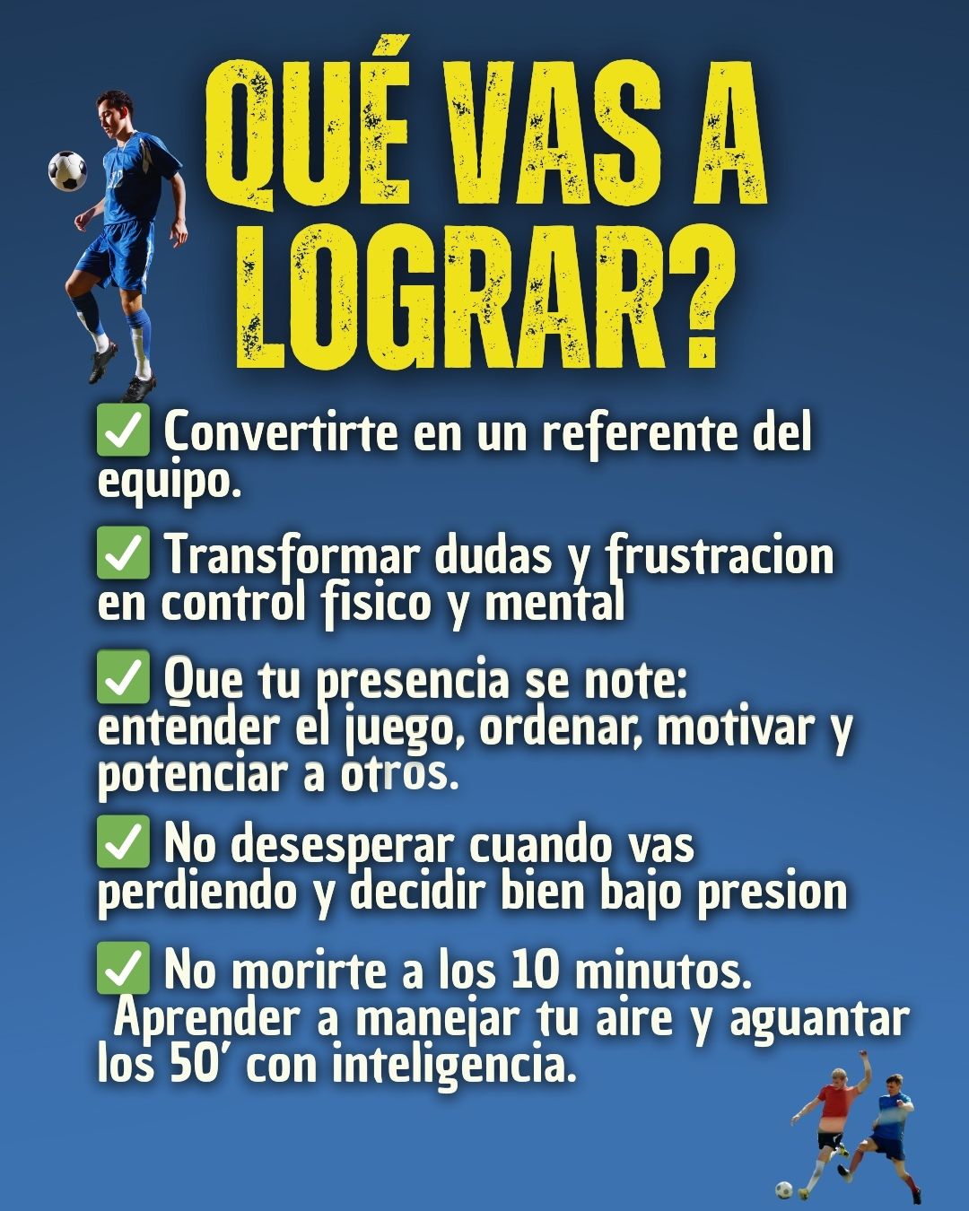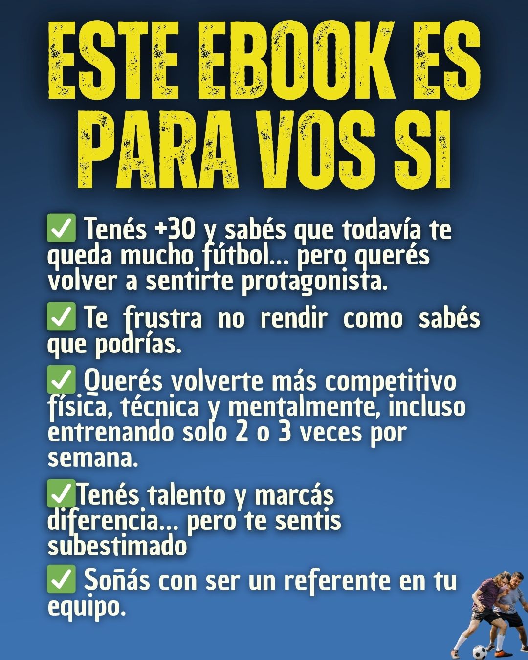 👉 Si bien está pensado para jugadores amateur de fútbol 7 que no tuvieron experiencia en clubes que quieren mejorar su rendimiento y ser mas competitivos frente a jugadores + jovenes. Tambien pueden beneficiarse todo tipo de jugadores desde adolescentes en adelante., ya que el ebook contiene muchos conceptos que son unicos de la experiencia y no son transmitidos en academias ni entrenamientos.